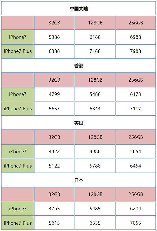 一旦牽扯到這一問題,其實無外乎就是行貨、港貨和水貨的比較問題。我們詳細列舉了目前iPhone7在全球主要區域市場的價格情況,果粉們可以逐一參考和比較。