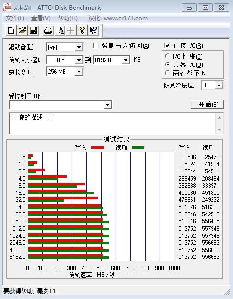 OCZ Vector150 240GB SSD在ATTO DiskBench測試中,最大讀取速度達(dá)到513.7MB/s,最大寫入速度達(dá)到557.9MB/s。