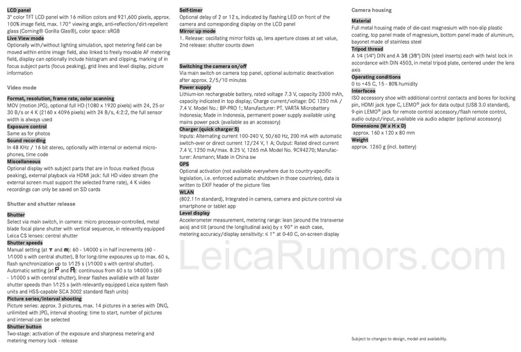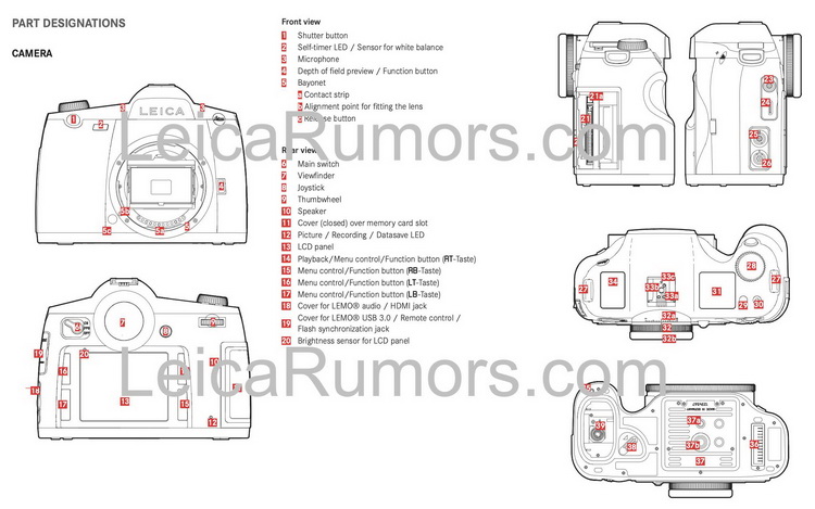 LeicaRumors此次泄露的S3信息非常豐富,包含相機所有角度的外觀照片以及規格表,詳細規格如下: