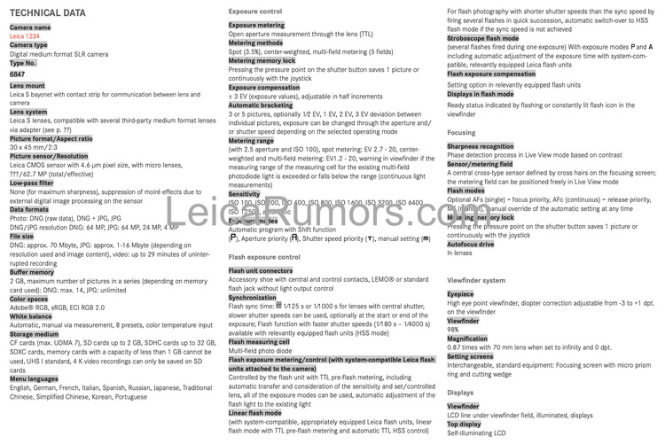 Napoleon Chan / 2020-01-23 10:0066182徠卡最近新品不斷,先是幾天前發布新一代黑白相機M10 Monochrom,現在LeicaRumors曝光了新中畫幅單反相機S3詳細規格以及外觀照片。