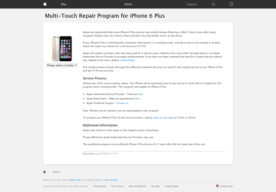 蘋果為受到“觸摸病(Touch Disease)”影響的iphone 6 Plus用戶提供低價(jià)的維修方案