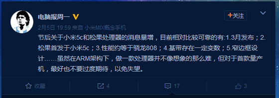 小米自研“松果”處理器和首發搭載機型小米5C或即將亮相