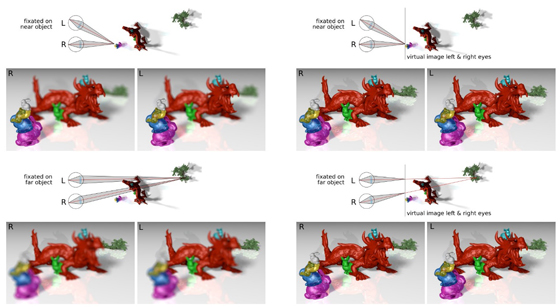 這張插圖顯示,即使擁有良好視力的人,“視覺景深-實際景深沖突”問題也有可能出現(xiàn),對于視力有問題的人,這個問題的影響更為強烈。
