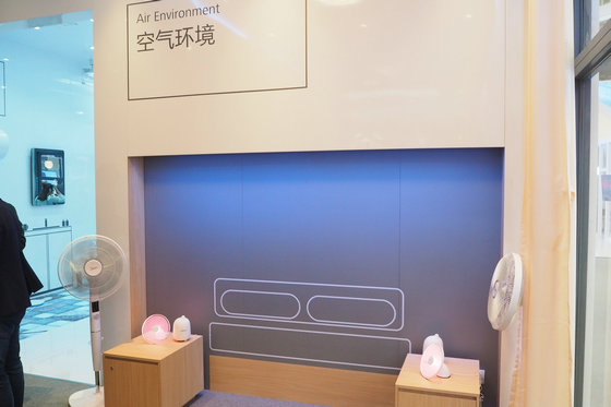 在智能家居體驗館中,華為為消費者帶來了以“休息娛樂”、“健康美食”、“空氣環境”、“洗浴晾衣”為主題的幾個展區,分別展示了在客廳、廚房、臥室、洗浴間等場景下,智能家居為消費者的生活帶來的極大便利。
