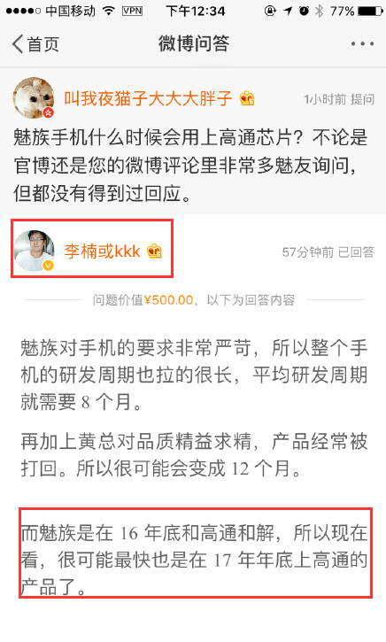 魅族何時能用上高通芯片?李楠說大約在冬季