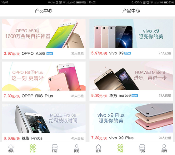 在這家租賃商中,還提供諸多熱門機(jī)型的租賃服務(wù),像OPPO R9S Plus、vivo X9、華為mate9、華為Nova等。