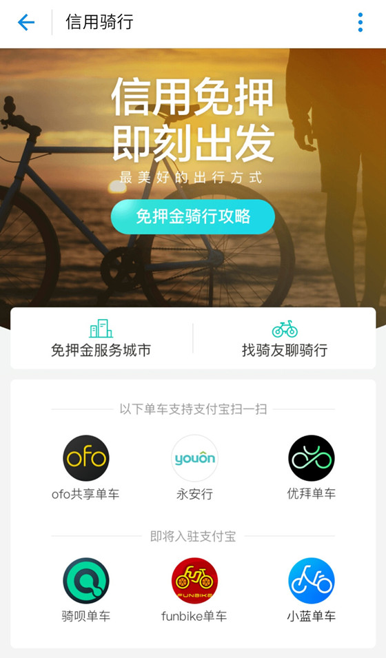 現(xiàn)在的共享單車中,還有永安行、優(yōu)拜單車等也接入了芝麻信用,甚至包括全國部分城市的公共自行車,也都支持信用分達(dá)標(biāo)的用戶免押使用。