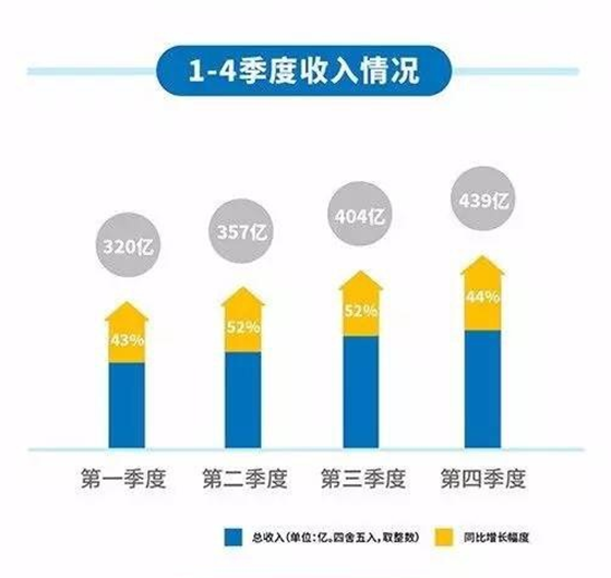 就在昨天騰訊終于為外界解開了去年財報收入的神秘面紗:2016年全年,騰訊總收入為人民幣1519.38億元(約合219.03億美元),比去年同期增長48%。第四季度營收為438.64億元(約合63.23億美元),比去年同期增長44%。