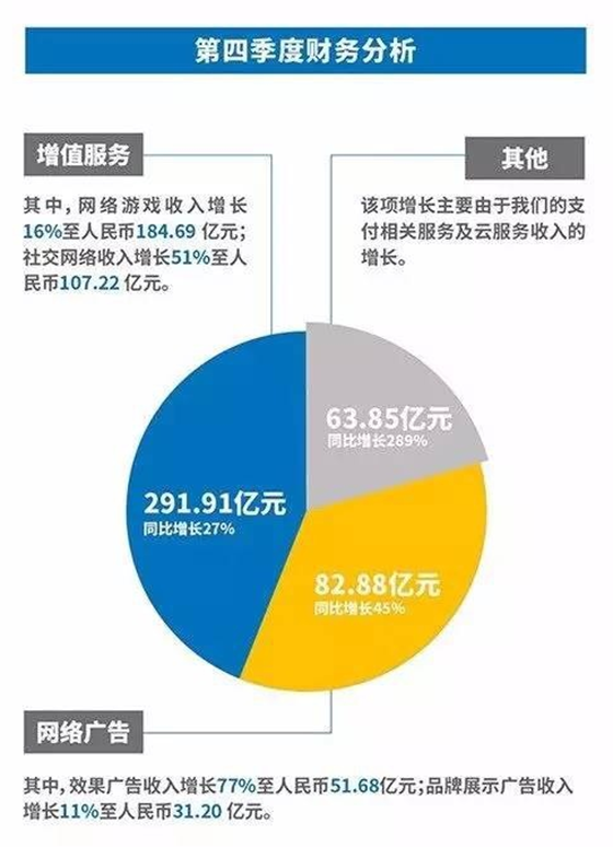 其中第四季度的財報顯示以網游為主的增值服務與網絡廣告占有絕對的優(yōu)勢地位,即使騰訊沒有公布財報的收入組成情況,我們這些經常使用騰訊服務的普通人也能猜出一二來。