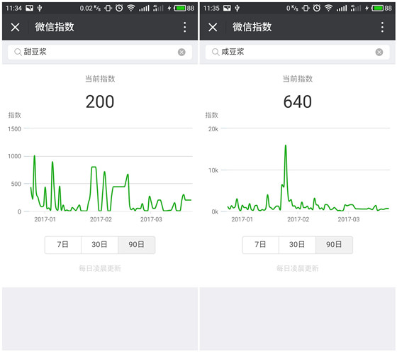 今天,你的朋友圈有被“微信指數”刷屏嗎?在此之前,微博熱搜榜常常是話題的引爆點,而明星粉絲量、話題熱度也常被拿來比較。如今,“微信指數”的推出,能讓大家更清楚地知道誰才是“微信紅人”,大家討論得多的熱點話題是什么,甚至,用微信自己的話說,連“甜咸粽子”、“甜咸豆腐腦”這一類“南北之爭”都能決出勝負!