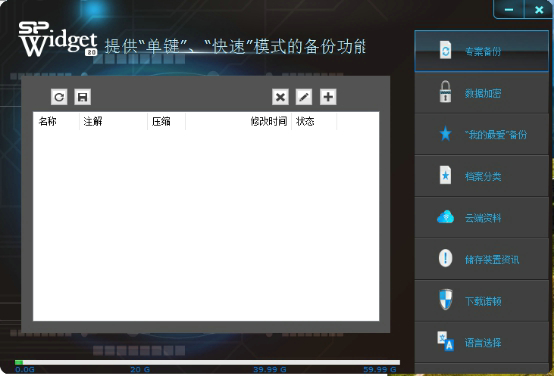 SP廣穎全系列U盤產(chǎn)品皆具備終身保固服務(wù),并同時(shí)隨產(chǎn)品附贈(zèng)SP Widget免費(fèi)下載軟件,軟件提供固定排程的備份功能、供檔案數(shù)據(jù)加密保護(hù)、還原與備份Internet Explorer、Firefox、Google Chrome書簽功能、檔案數(shù)據(jù)分類、轉(zhuǎn)存至行動(dòng)存儲(chǔ)裝置服務(wù)、在線維護(hù)您的云端硬盤數(shù)據(jù)功能等七大功能,幫助用戶有更好的產(chǎn)品體驗(yàn)。
