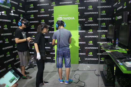 在VR體驗區(qū),不少人都親身體驗了強大的顯卡性能帶來的流暢VR游戲體驗。