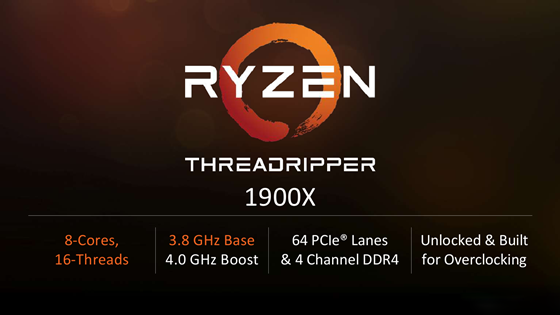 AMD不久前剛解禁了發燒級Ryzen ThreadRipper系列處理器的兩個高端款:16核的1950X和12核的1920X。這兩款產品的表現非常亮眼,大可與英特爾的Core i9系列的高端產品一較高下。近日,AMD又展示了ThreadRipper系列的入門款——Ryzen ThreadRipper 1900X。