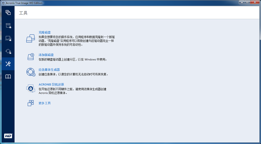 Acronis True Image WD Edition是西部數(shù)據(jù)與Acronis合作推出的專業(yè)定制化數(shù)據(jù)備份軟件,免費為西部數(shù)據(jù)存儲產(chǎn)品用戶提供多種備份功能。