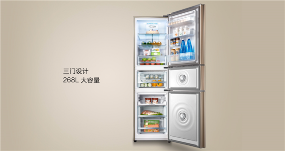 此款冰箱的有效體積為268L,冷藏室體積為146L,冷凍室為81L。變溫室體積為41L。中等體積,此體積針對于三口之家的正常使用沒有問題。