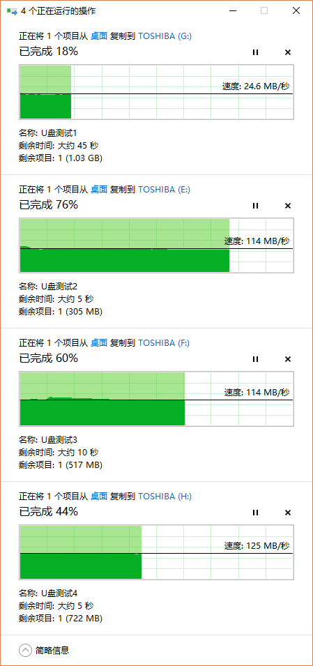 接下來同時向四個U盤分別拷入已復制成4份的電影文件。