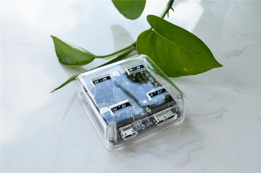 奧睿科在外觀上創新的使用了水晶透明外殼設計,使其擁有一種電器元器件構成的科技感,這種設計也是其對自身質量的強大自信,畢竟每個電子元器件的規格參數以及焊接針腳的工藝好壞可以一眼看出。其次此集線器的功能性也很強大,一拖四的USB3.0插口可以滿足生活中絕大場景的使用。整體來說,是值得種草的一個小玩意兒。