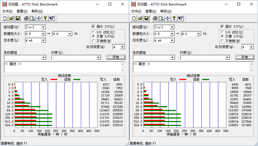 ATTO Disk Benchmark是一款簡單易用的磁盤傳輸速率檢測軟件,使用了不同大小的數據測試包, 數據包按0.5K,1.0K,2.0K直到到8192.0KB分別進行讀寫測試,測試完成后數據用柱狀圖的形式表達出來。能夠很好的說明文件大小比例不同時對磁盤讀取、寫入速度的影響。