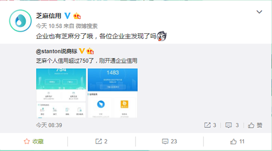 今天上午芝麻信用轉發微博公布:企業也有芝麻分了!大家都知道,個人芝麻信用分是在350—950分之間。而近日支付寶推出了針對企業群體的、依據企業相關信息對企業資信狀況進行評估的服務“芝麻企業信用分”,起步則是1000分。企業芝麻信用分分數介于1000—2000分之間,根據分數高低,劃分不同的等級,分數越高代表企業信用越好。