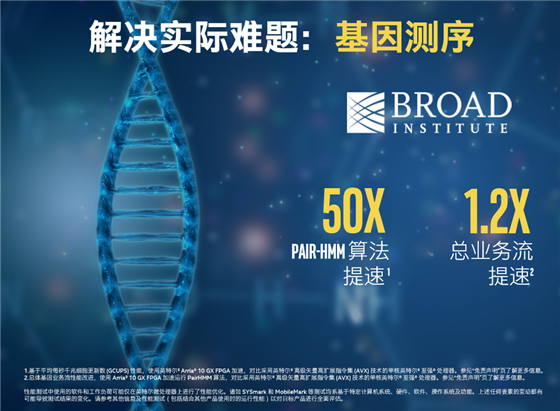 英特爾還將FPGA技術加入基因測序的工作中,基于平均每秒千兆細胞更新數(GCUPS) 性能,使用英特爾FPGA 加速運行Pair-HMM 算法可使得總體基因業務流性能提升50倍,總業務流提升1.2倍。