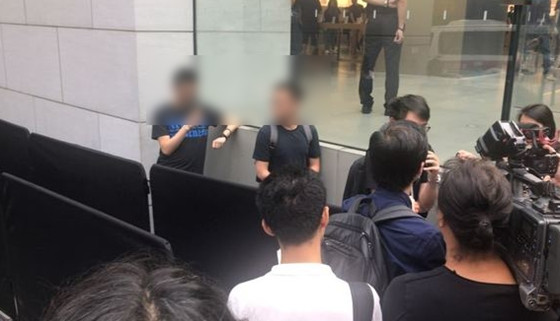蘋果在香港的門店也只有四個人在排隊等待,周圍采訪報道的媒體人數似乎都要更多一些。