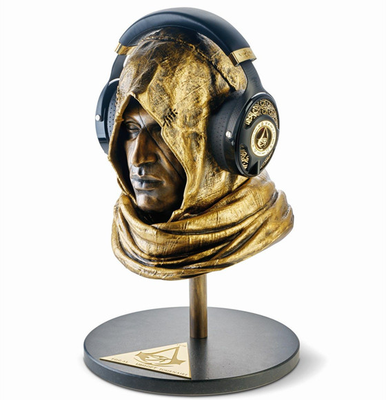 育碧推出這款耳機也是為去《刺客信條》系列新作《刺客信條:起源》造勢,由于游戲新作的背景定在了古埃及,這款耳機也相應的做了大面積的“法老之眼”紋樣設計,18K金的顏色也與古埃及給人的滿是黃沙的印象頗為切合,獨特的刺客信條標志如點睛之筆,對于該系列游戲的忠實玩家來說吸引力不小。