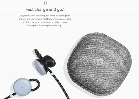 Pixel Buds在續航方面,谷歌表示充電盒可以為耳機提供長達24小時的續航,耳機本身續航為5小時。它有三種配色黑、白、藍,目前已經開始預訂。