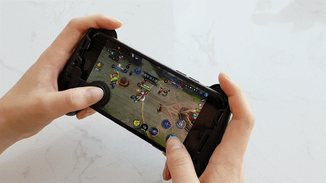 將手機iPhone 7夾入手柄中,進行王者榮耀游戲。