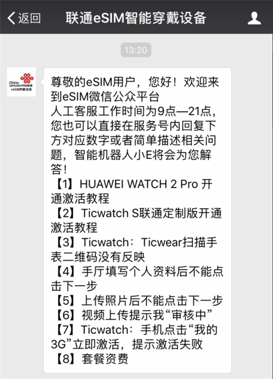 eSIM卡的概念就是將傳統SIM卡直接嵌入到設備芯片上,而不是作為獨立的可移除零部件加入設備中。所以可穿戴設備最需要的打電話、發信息等功能均可實現。聯通開通的eSIM業務中目前只支持兩款設備,華為WTACH 2 Pro手表與Ticwatch S聯通定制版手表。