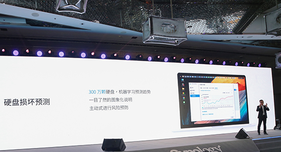 在宣布與京東達成戰(zhàn)略合作的同時,群暉銷售總監(jiān)王皓寧先生也在會上詳細深入的介紹了DSM 7.0與群暉自主研發(fā)的RAID快速重建技術,搭配整合機器學習技術的硬盤預檢和自動替換機制,以及新形態(tài)的企業(yè)云盤。