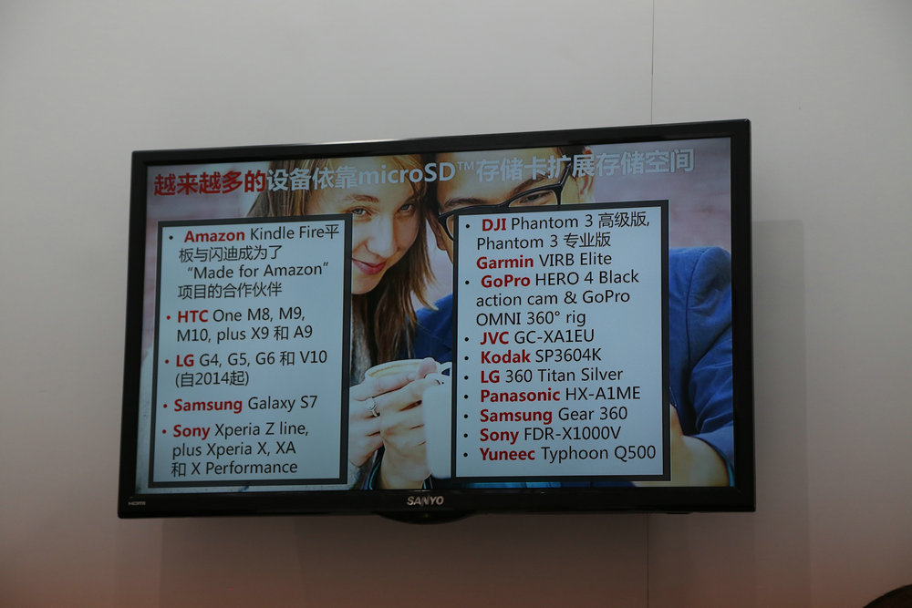 吳總:目前的SD協會的要求是說智能手機都需要支持64GB及以上,現在有些智能手機支持到128GB,但其實是因為市場上還沒有推出256GG這么高容量的產品,所以在產品標注上也都沒有統一,目前我們也還在做測試,像HTC、SONY、LG、三星等7家手機廠商的眾多機型已經支持,以后會吧眾多規格放入支持列表中。
