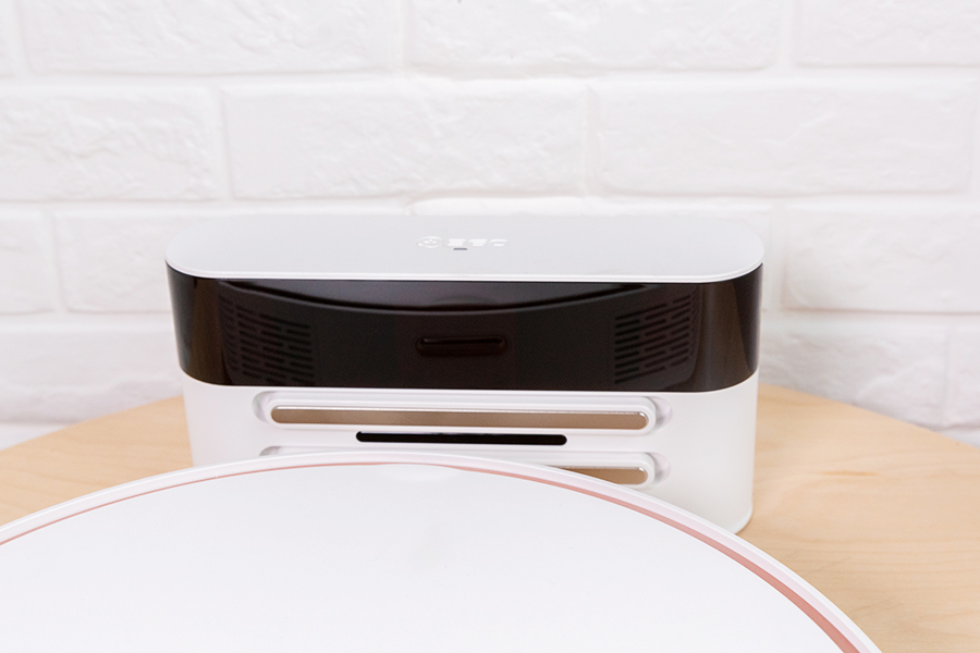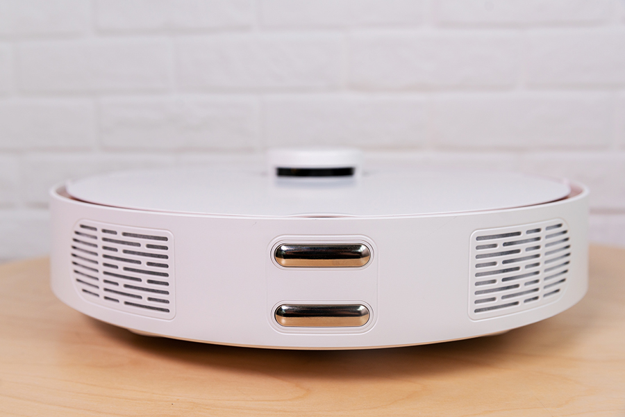 外觀造型上,S7與其它的掃地機器人并不明顯的區(qū)別,均為圓形的造型,并以白色為主色調(diào),外圈輔以玫瑰金的顏色作為配色。掃地機器人主機正面凸起的圓柱帶有360的logo標記,下方就是LDS激光測距傳感器,有它專門負責掃地機器人的制定規(guī)劃路徑。在S7頂部的下方位置回充和電源兩個物理按鍵,主要還是靠手機APP來操控掃地機器人。