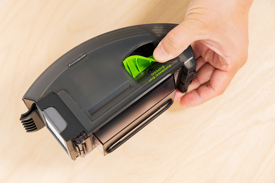 沒錯,就是那個綠色的塑膠出口,當掃地機器人打掃完畢后,對接上自動集塵充電座,集塵盒內的垃圾就是通過這個出口被強大的吸力傳輸進集塵袋。而沒有綠色塑膠出口的集塵盒是無法和Clean Base?自動集塵充電座配套使用的。另外,集塵盒的微塵清潔濾網采用高效濾網,能夠吸附99%微塵,花粉以及寵物的過敏源,不用擔心二次污染。