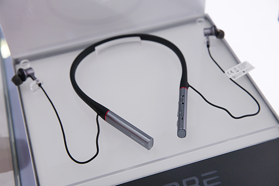 除了這款全新的真無線藍牙耳機外,Stylish雙動圈頸掛式的藍牙耳機也在展會上閃亮登場,同樣有黑金粉綠4款時尚配色,內置石墨烯和鈦同軸雙單元,配備了高清麥克風,記憶項圈采用了耐彎折的設計,便于用戶收納,支持藍牙4.2,傳輸距離可達10米,充電10分鐘就可連續使用3小時。