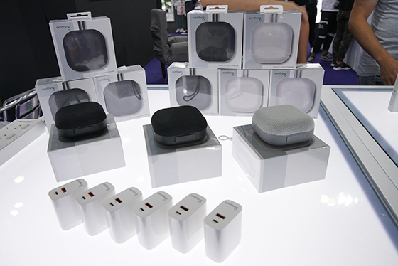 此外,1MORE還在展區陳列了旗下子品牌OMTHING,該品牌不僅也有豐富的耳機產品,還有便攜式藍牙音箱,充電頭以及數據線等數碼產品。