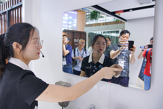 在智慧浴室里,海爾還有一些獨到的細節值得稱贊,比如通過手機APP的遙控就能實現熱水器的預約熱水功能,在洗澡時就不會再干等著涼水變熱。不想用手機APP還可再智慧浴室中通過智能鏡實現類似的功能,通過洗手臺前的體脂秤,智能鏡還能實時顯示用戶的體重等相關數據,還可觀看視頻點歌,仿佛是在家搭了一個魔鏡。