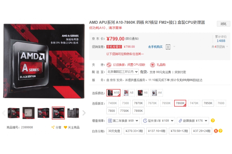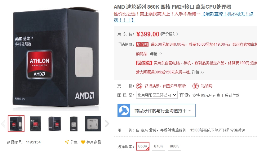AMD速龍四核 860K售價(jià)399元