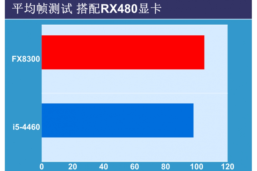 在這兩個(gè)平臺(tái)的測(cè)試中均采用AMD最新上市非常流行的RX480顯卡,為魔獸7.0開啟1080p分辨率下的最高畫質(zhì),運(yùn)行游戲同時(shí)記錄平均幀速率。結(jié)果和明顯的FX8300在性能上和價(jià)格都領(lǐng)先的對(duì)手。