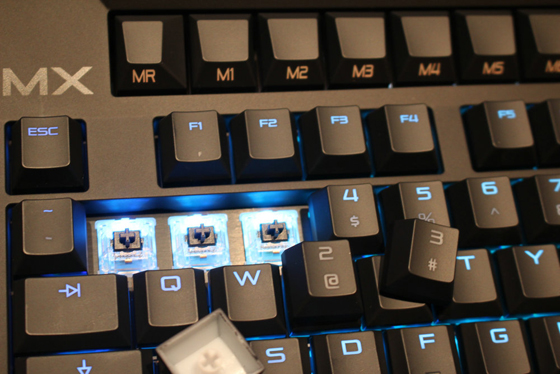 CHERRY MX BOARD 9.0(以下簡稱9.0)的最大特點是搭載了櫻桃自家的MX RGB開關。每一顆MX RGB開關均由德國奧爾巴赫工廠制造,內部兩個金屬片采用黃金十字觸點技術,背光SMD LEDs貼片式模塊,色值理論達1670萬色,單軸使用壽命實驗室理論值達5000萬次。背光效果有彩虹波浪、呼吸、單點亮、跑馬燈、FPS游戲模式以及單色背光的固件模式,隨著固件的升級,更多燈效隨之解鎖。