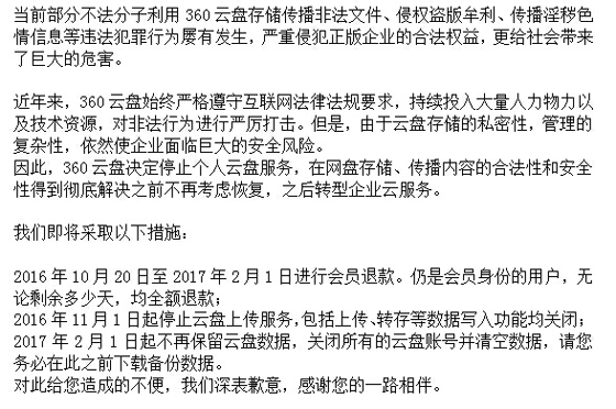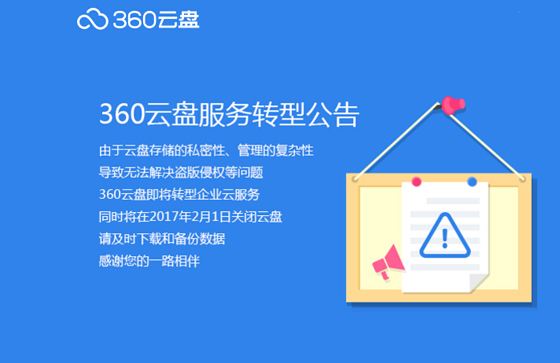 如今,360云盤,也終于不堪重負宣告停止個人用戶存儲服務功能了。