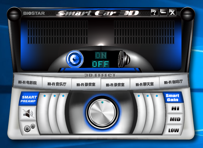 音頻特效控制程序,界面比較簡單,但是常用功能一個不少,可以設置各種情景模式