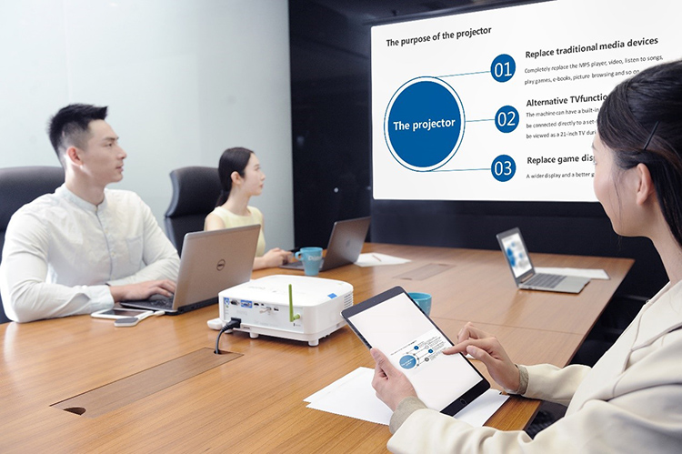 但在良好形式下我們千萬不能掉以輕心,要有條不紊地創(chuàng)造安全、高效、活力的辦公空間,好讓員工快速進入工作節(jié)奏需要更好的設備幫助。解決會議室里人員密集交流的問題,聰明的行政人員會選擇一臺智能商務投影儀,它不僅能提高辦公效率,還能減少人與人之間,為企業(yè)恢復生產(chǎn)工作增加一道保障。