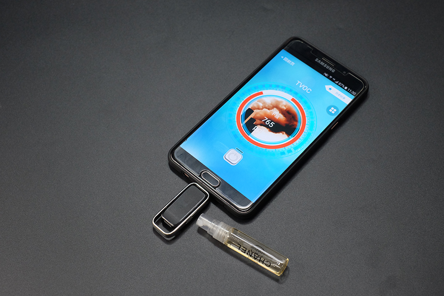 該檢測儀“麻雀雖小五臟俱全”內含氣體傳感器和微處理器,可直接連結智能型手機、平板計算機等手持行動裝置。通過手機專屬APP可實時偵測室內TVOC。APP除了可記錄當下的空氣質量外,更提供完整1個月內的空氣質量紀錄,提供智能醫療物聯網的個人健康生活管理、電子健康檔案、室內環境空氣質量診斷等大數據報告。