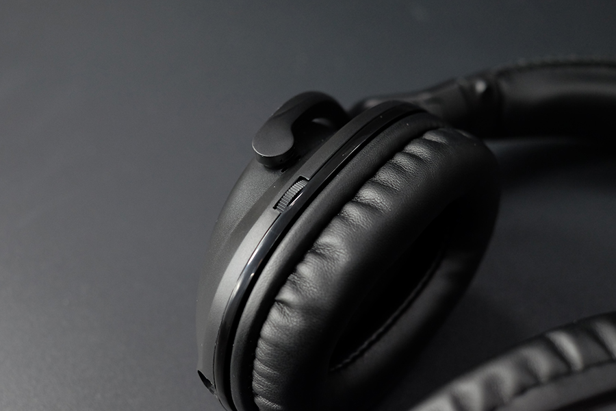 左耳罩后方有一個音量調節旋鈕,可以調節音量