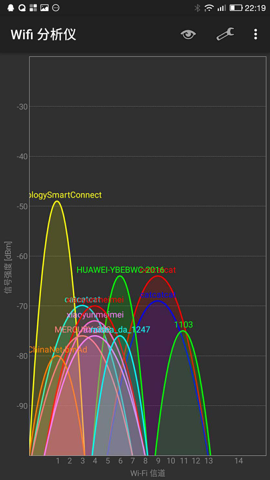 群暉RT1900ac無線路由器的SRM操作系統十分驚艷,功能豐富。作為無線路由器,無線信號的強弱也是至關重要。采用的手機軟件Wi-Fi分析儀進行測試,地點就選在小編的家居環境。