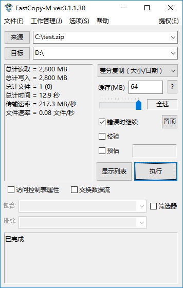 FastCopy下讀取速度達到了174MB/s,寫入速度達到了217MB/s