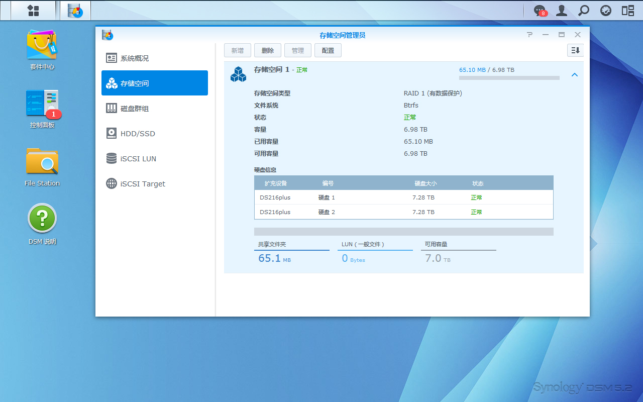 通過以上測試可以看到這塊硬盤表現(xiàn)非常不錯,那么我們現(xiàn)在就來測試一下這塊硬盤在NAS中的表現(xiàn)。NAS我們選擇了群暉的DS216+,并且分別組建了RAID 1和JBOD模式來進行測試。
