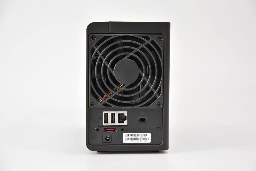 背面有兩個USB2.0接口,一個千兆網口和一個eSATA接口