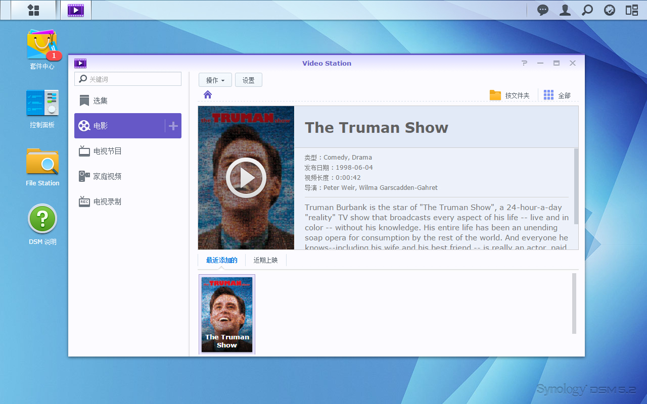 把影片放到Video Station的文件夾中,系統會自動識別影片并加上封面,讓人一目了然