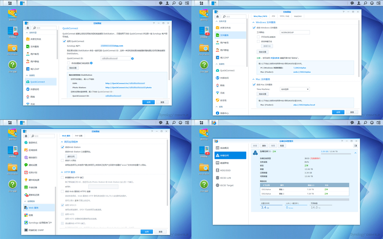 接著我們來測試一下DS216+的主要功能,眾所周知,群暉能夠成為NAS行業的領導者主要靠的就是豐富的套件,穩定的性能,人性化的操作體驗。如VIDEO STATION,PHOTO STATION,QuickConnect等功能都是操作簡單且十分實用的功能,也得到了用戶的喜愛。DSM系統更是成為了業界標桿。那么現在我們就來對DS216+來進行更深層的測試。